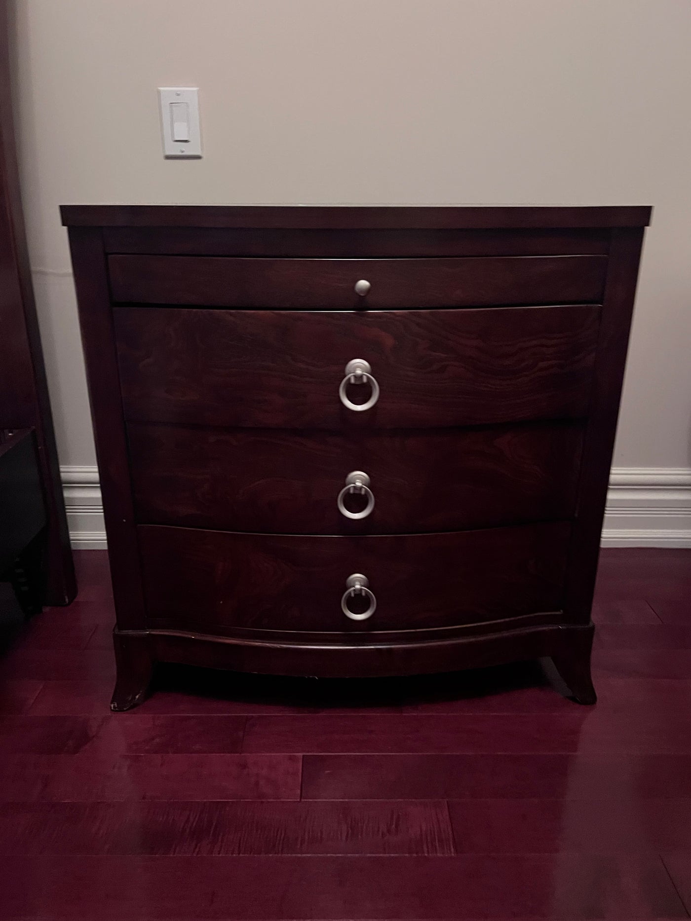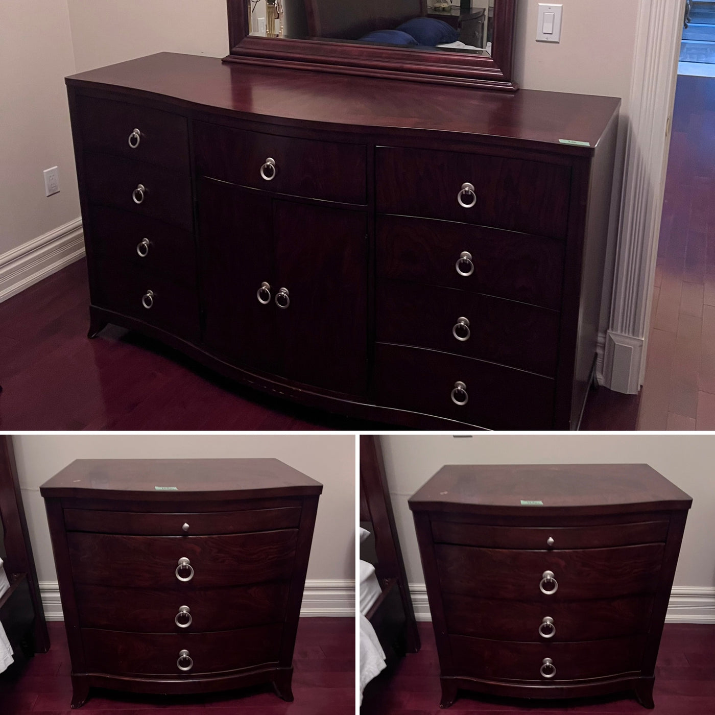 *please note: the nightstands have a small mark on top as shown in the pictures. SOLD AS IS.