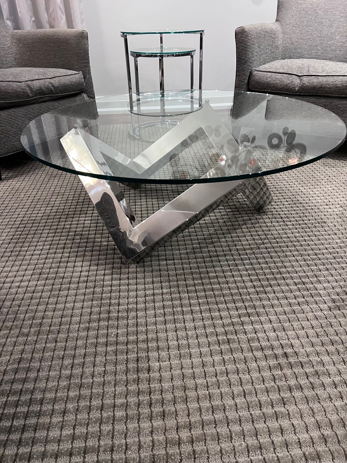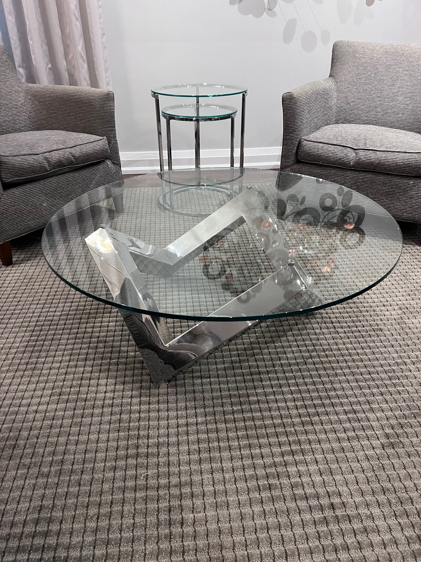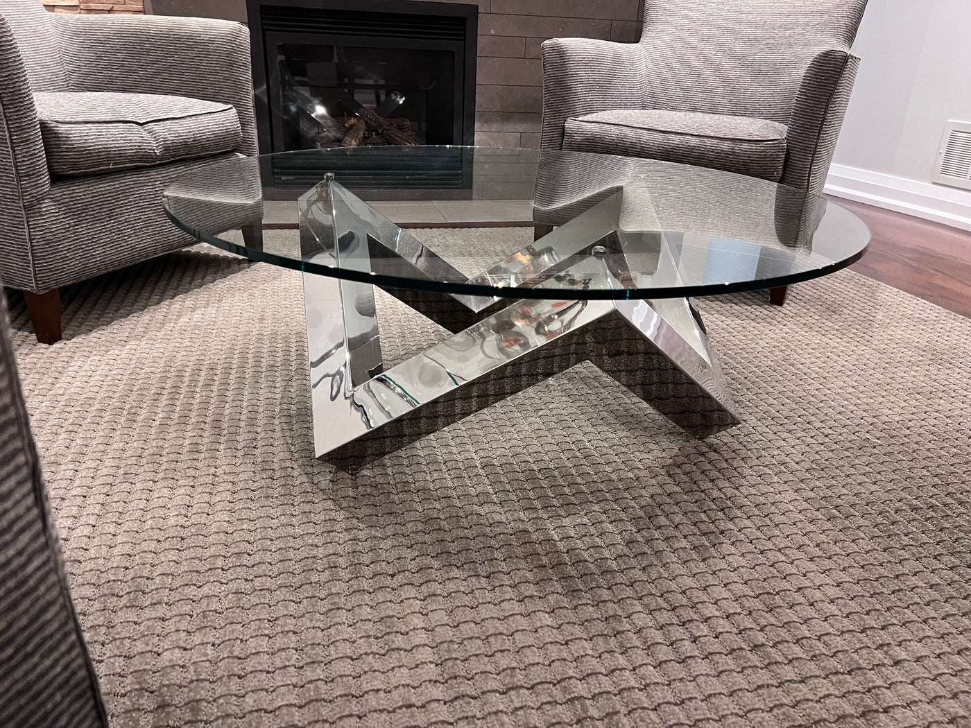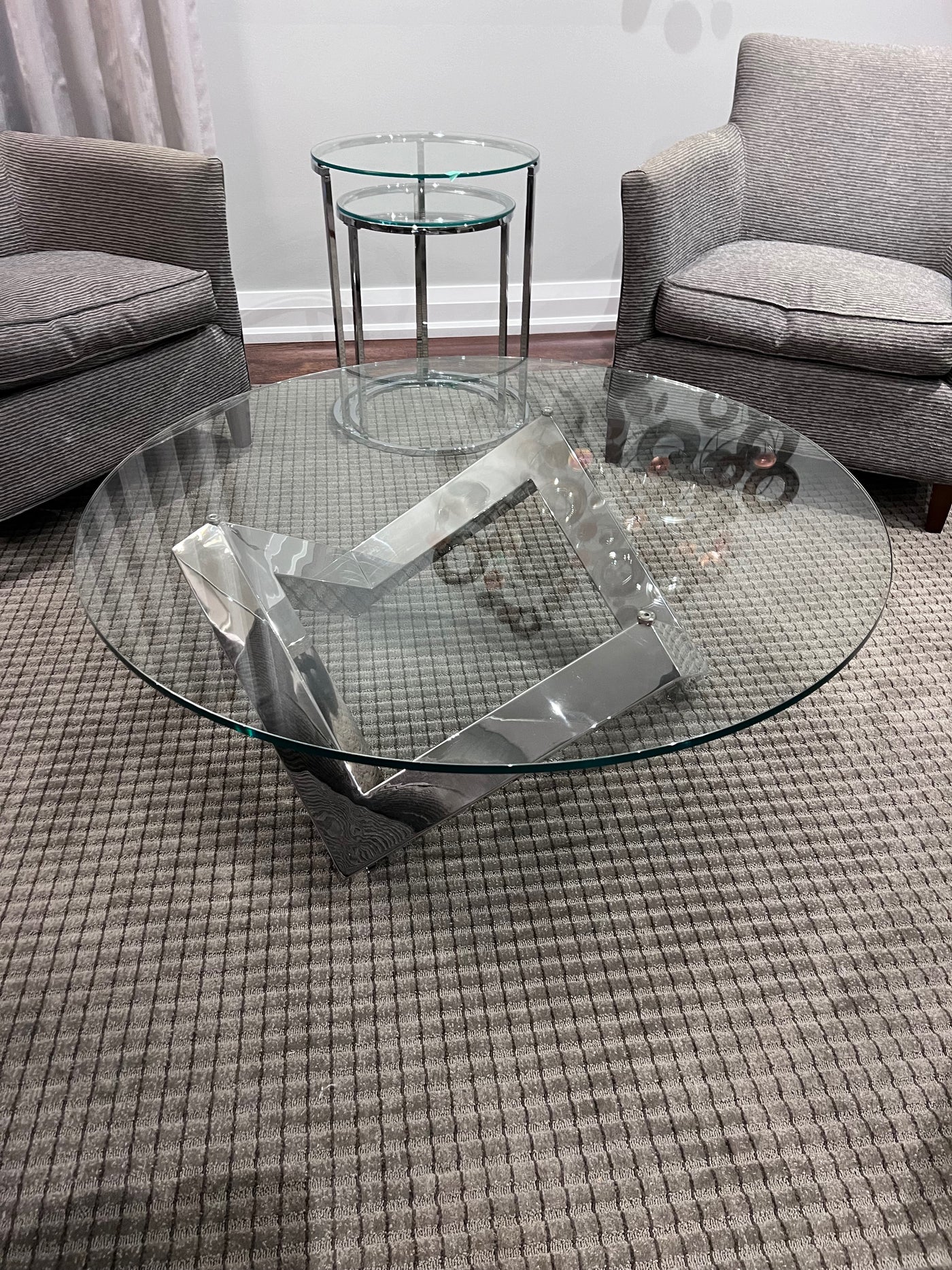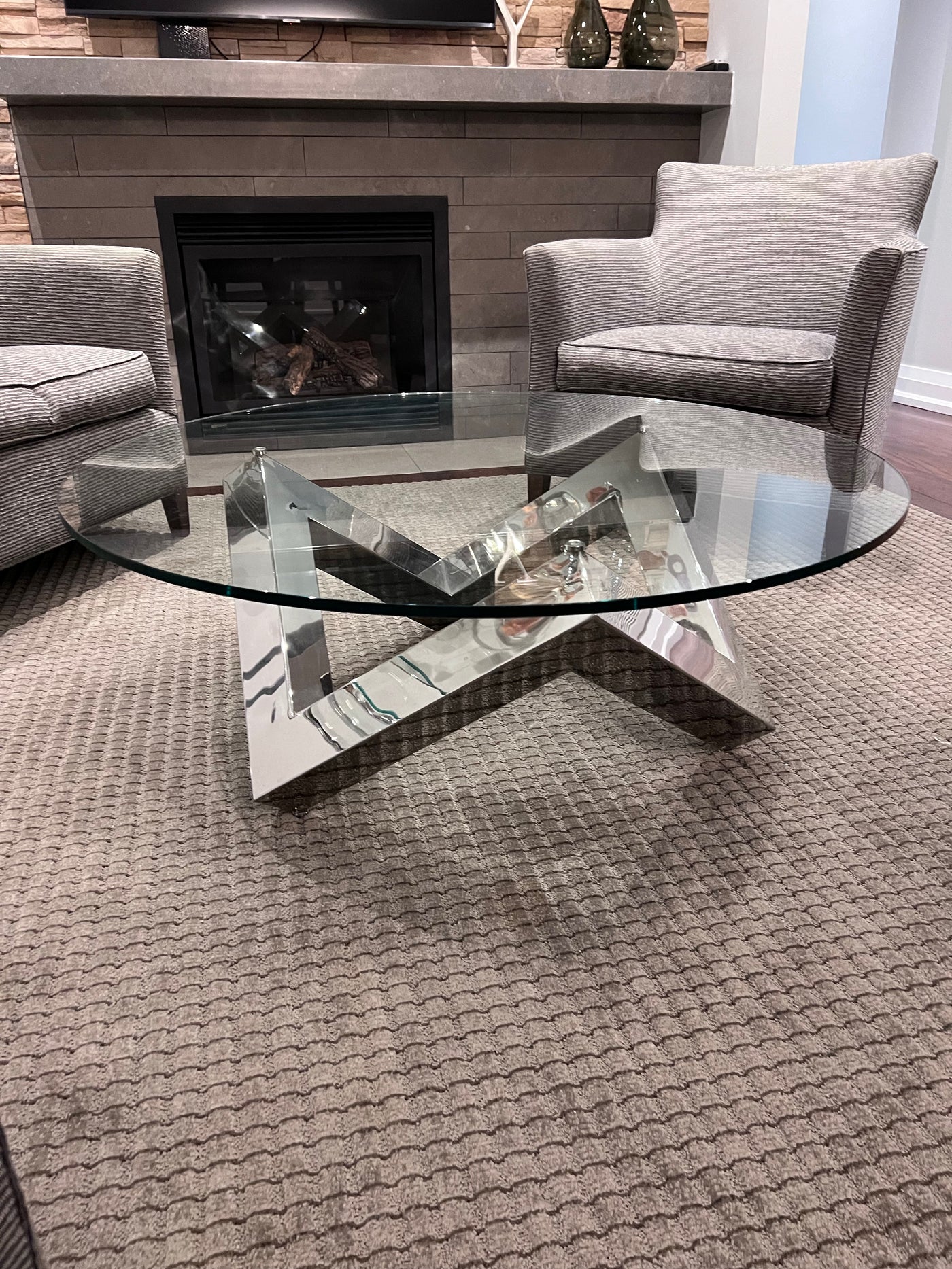 ELTE Chrome/Glass Round Como Cocktail Table (*retail $895).