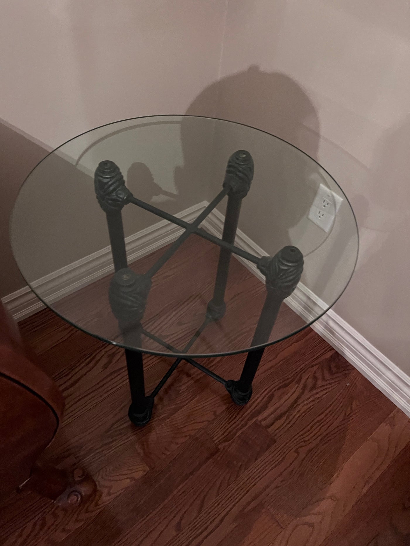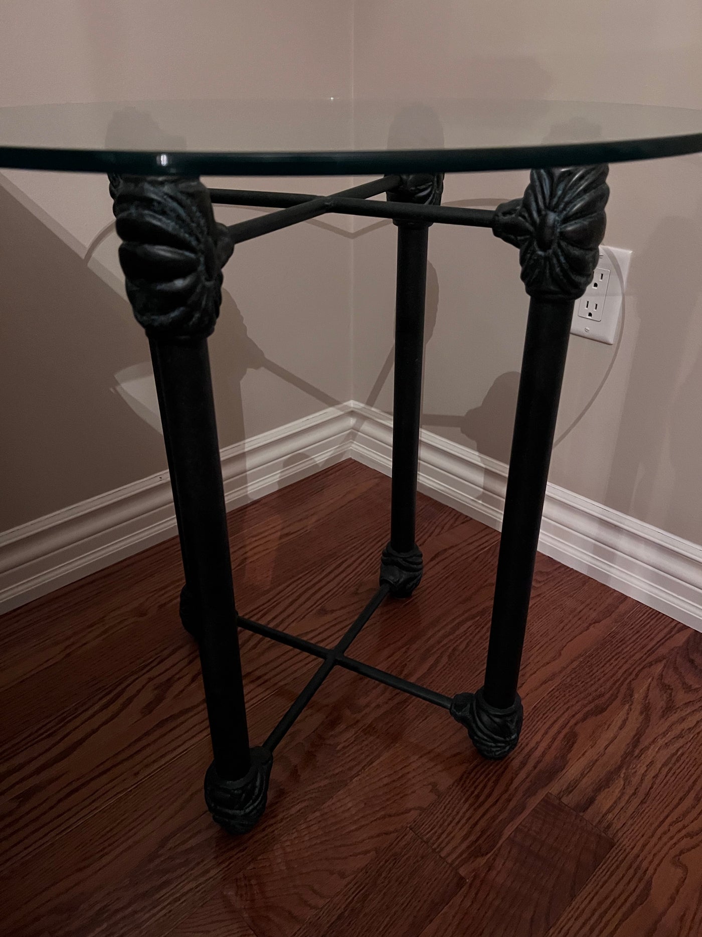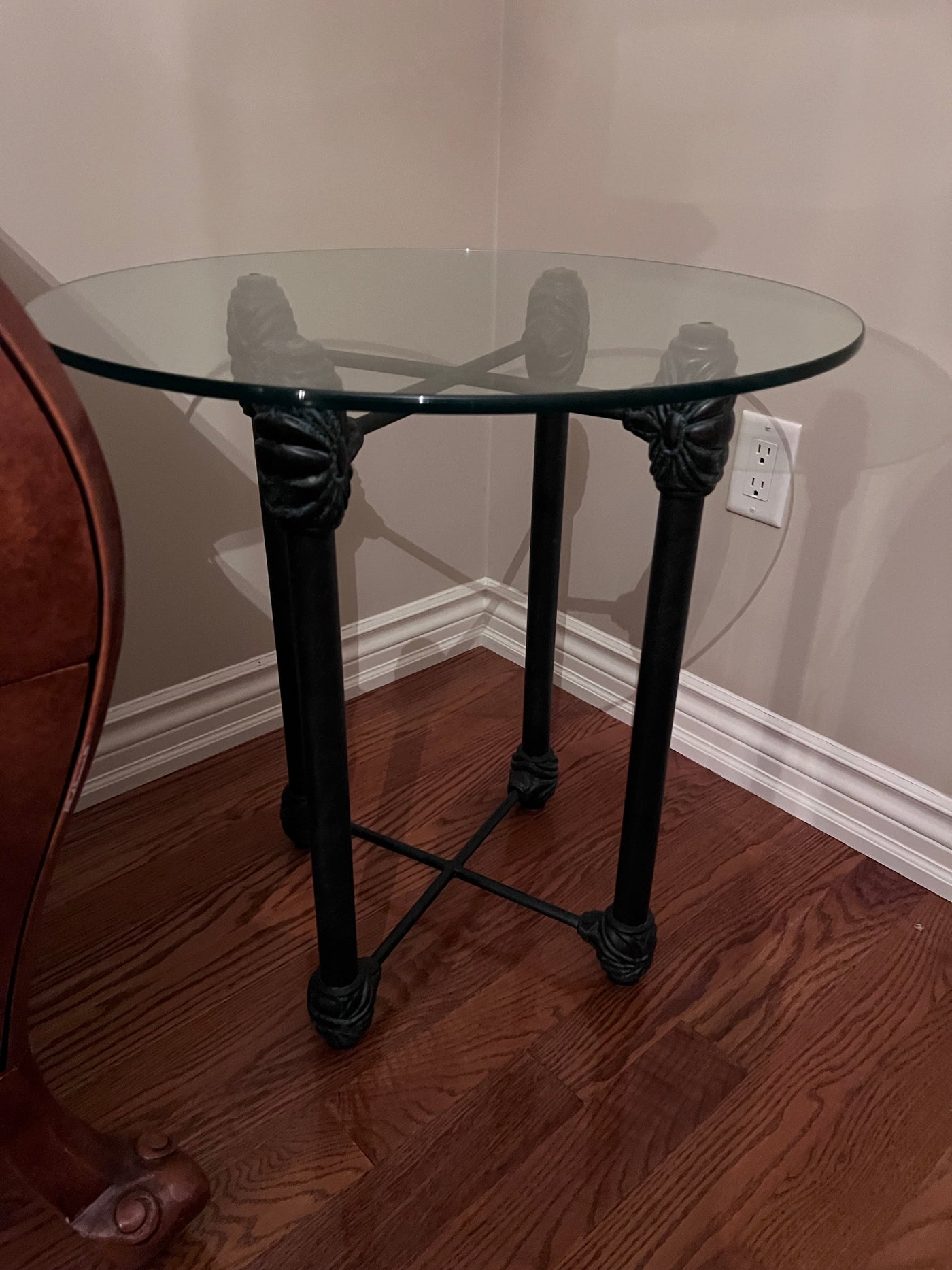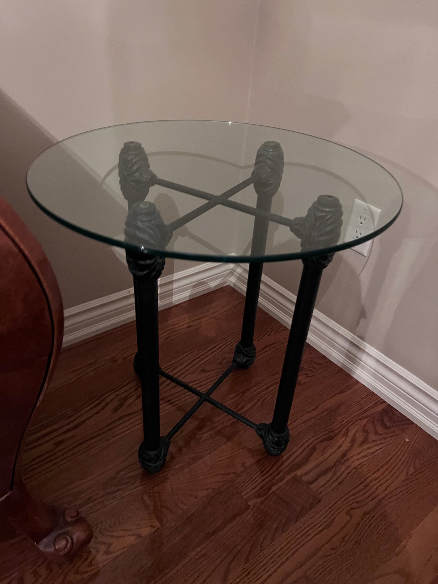 Wesley Allen Round Glass Side Table.