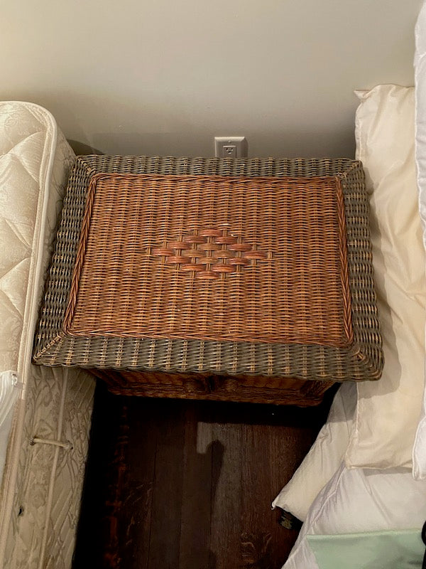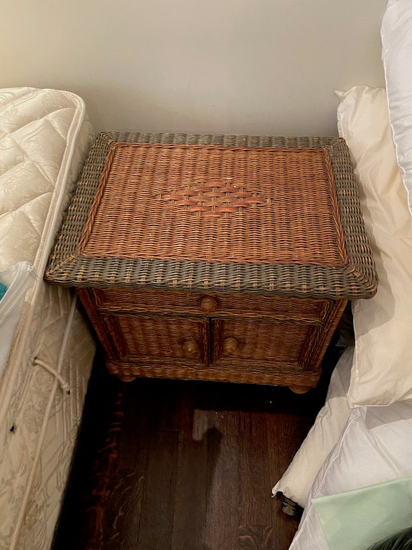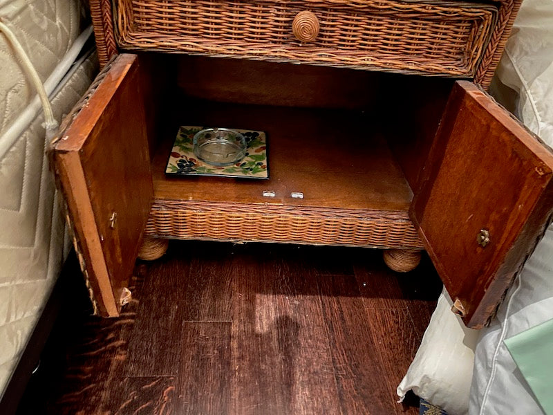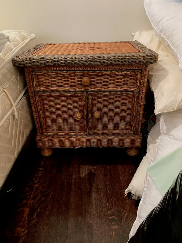 Wicker Side Table. Cabinet at the bottom with 1 drawer at top.