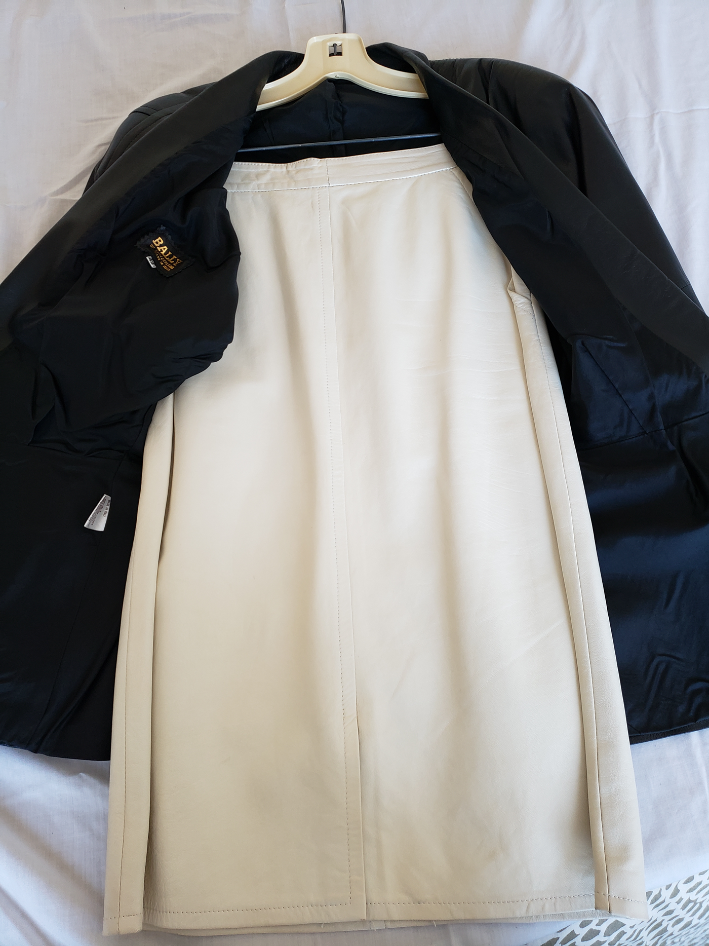 Women's Leather Bally Black Jacket & Cream Skirt.