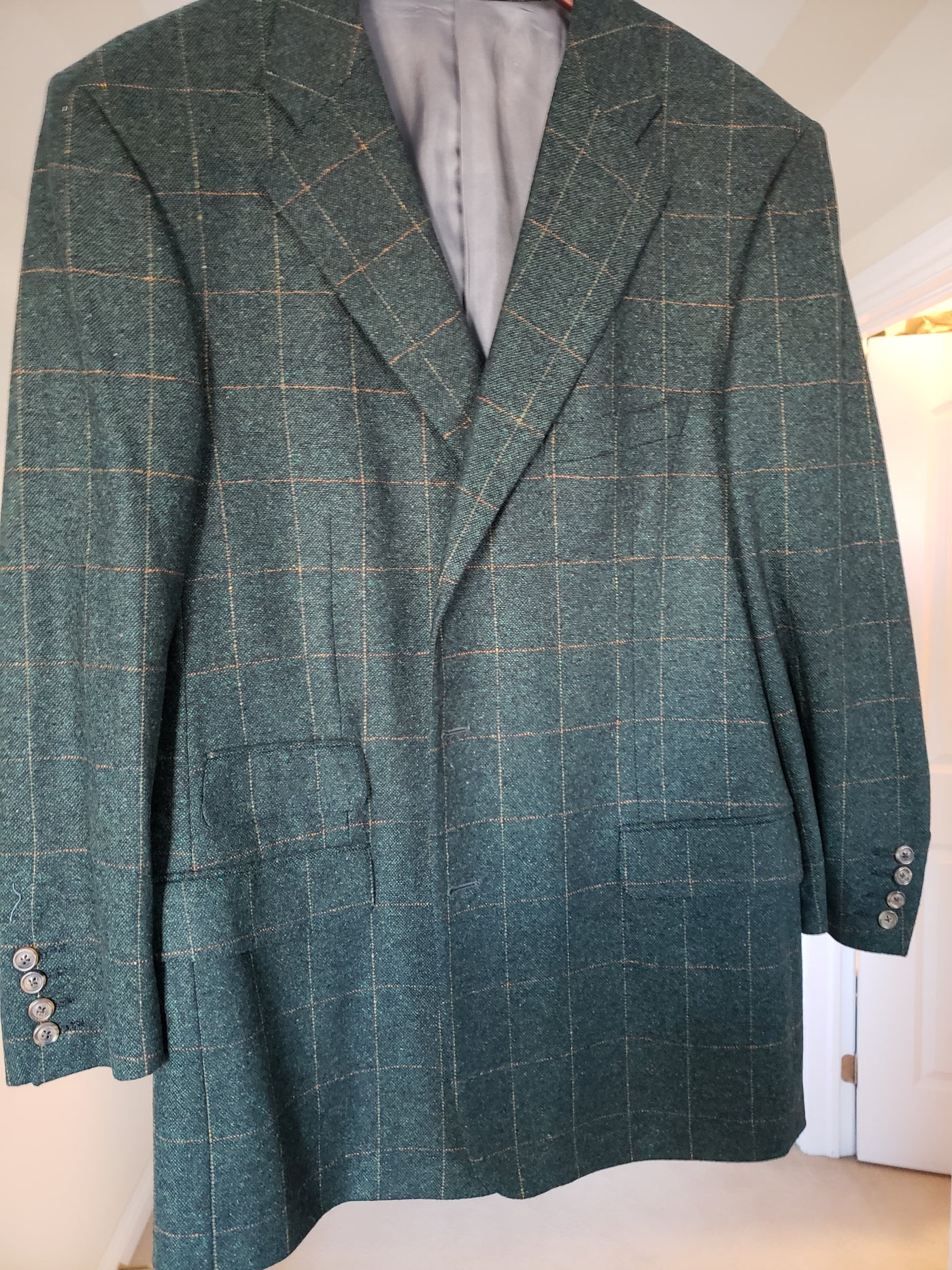Zegna Dark Green Checker Blazer. Cashmere. Made in Italy.