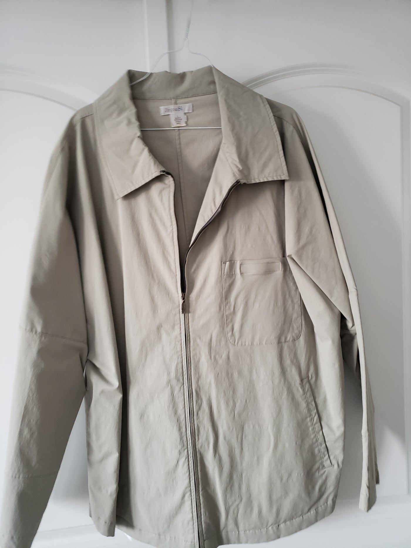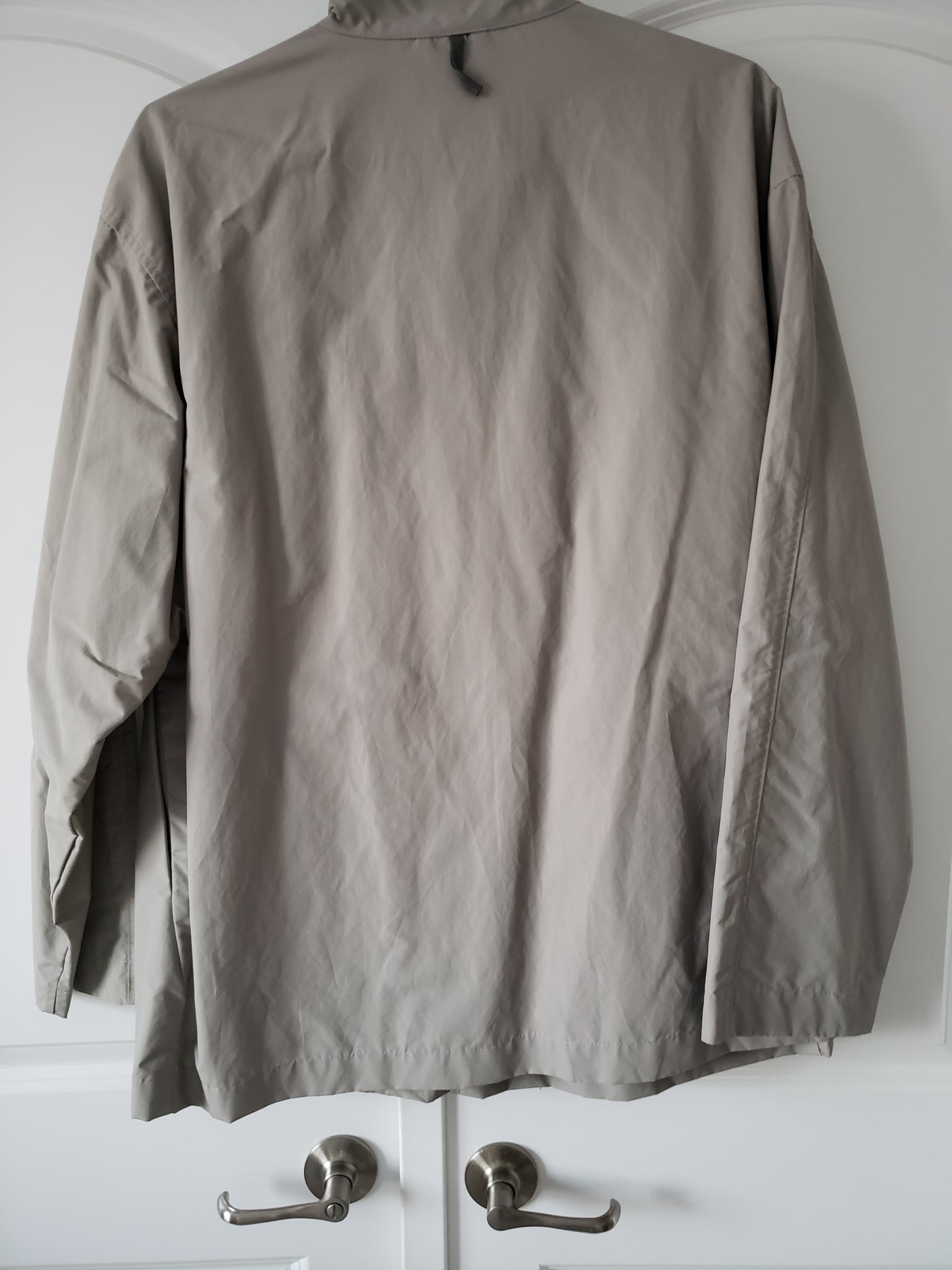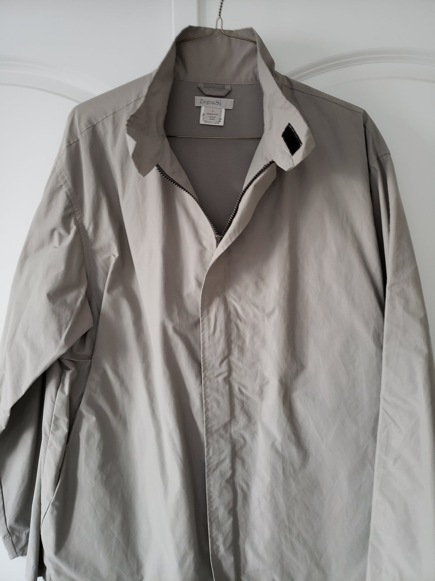 ZegnaS Grey Spring Jacket. ZegnaS nylon windbreaker with front pocket and front zipper, modern design.