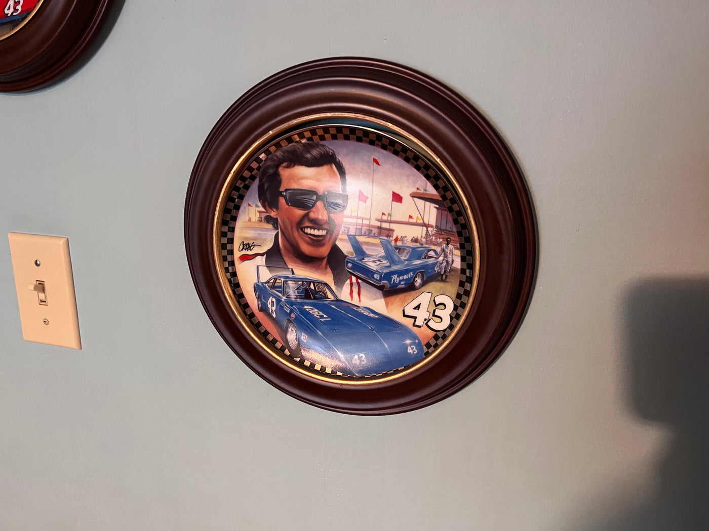 The Franklin Mint Heirloom Recommendation Richard Petty, 2 Collector Plates + Mahogany Frames