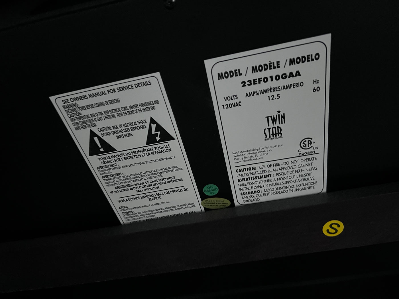 twin star 23EF010gaa Electric Fireplace.